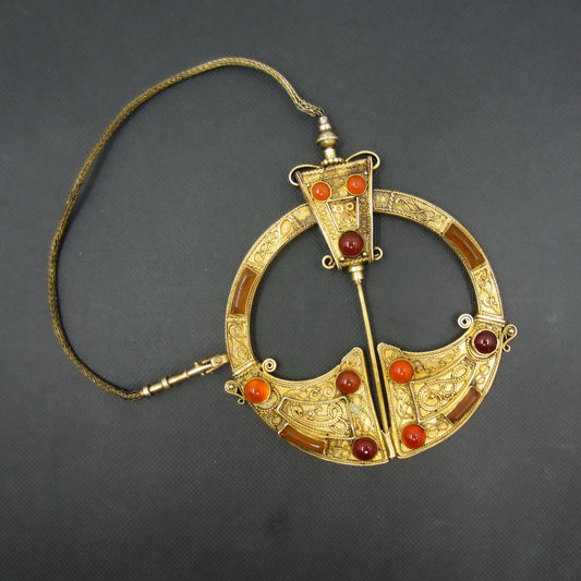 Vintage Large Carnelian Penannular Brooch Gilt Silver