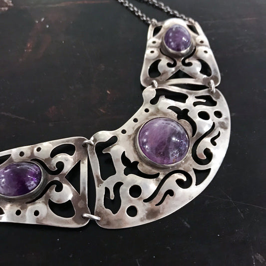 Big Arts and Crafts Amethyst Necklace Sterling c. 1940