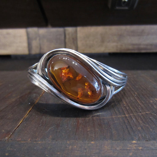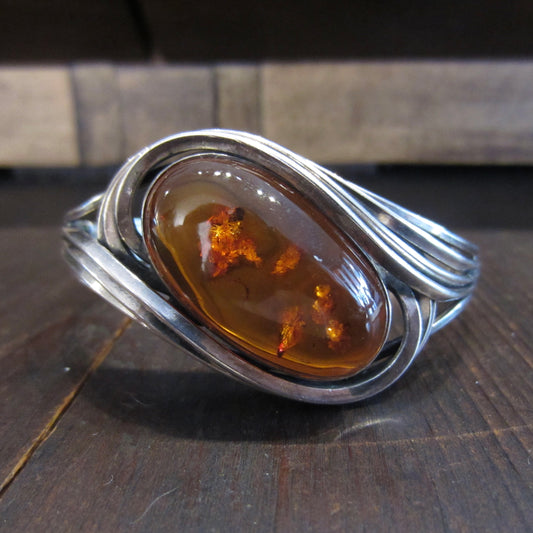 Vintage Large Amber Hinged Bangle Sterling Silver, Poland c. 1970