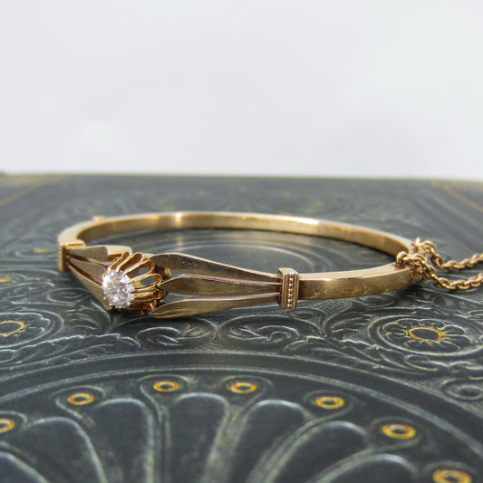 Victorian Old Mine Diamond Hinged Bangle 14k c. 1880