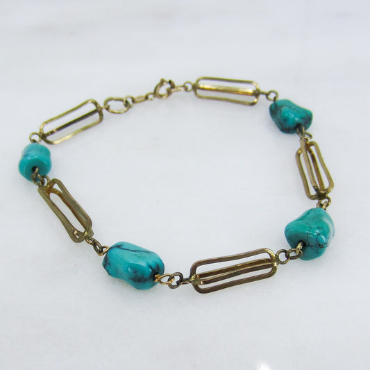 Vintage Turquoise Nugget Bracelet 9k c. 1970
