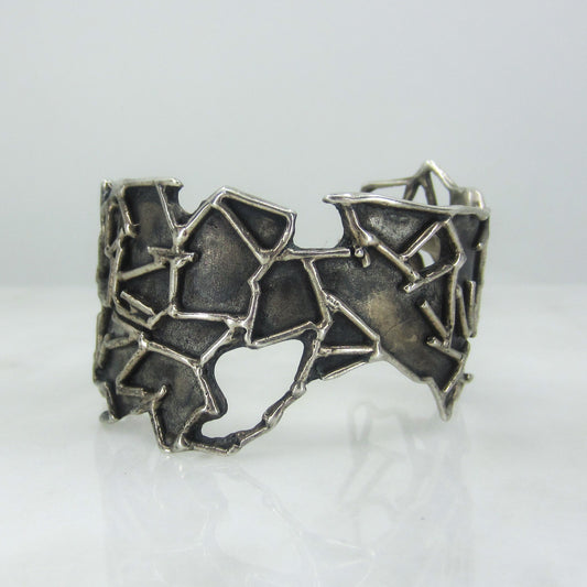 Modernist Geometric Textured Cuff Sterling c. 1970