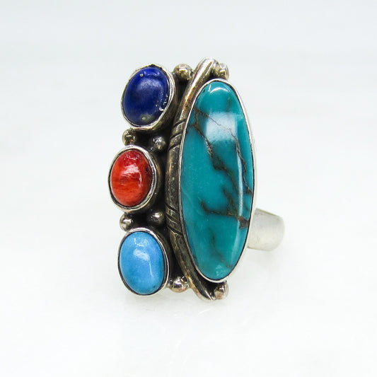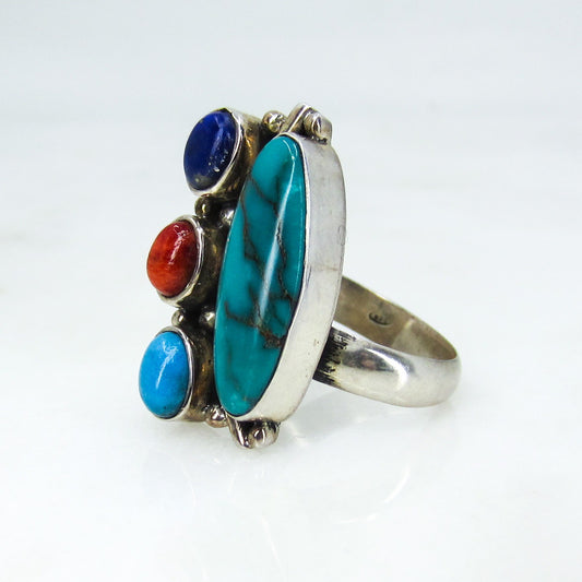 Vintage Big Turquoise, Spiny Oyster and Lapis Ring Sterling c. 1990Regular price $ 225.00 USDRegular priceUnit price per-
