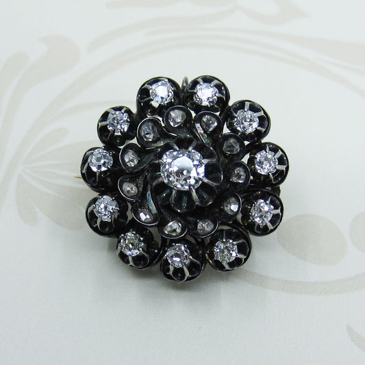 Victorian Old Mine and Rose Cut Diamond Cluster Brooch/Pendant Silver and 14k c. 1860Regular price $ 2,800.00 USDRegular priceUnit price per-