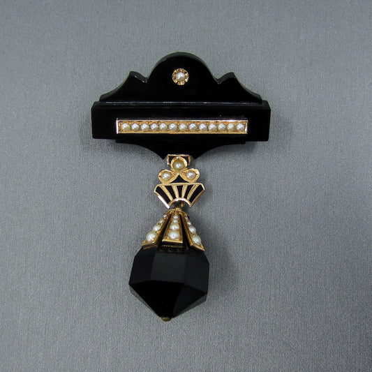 Victorian Onyx, Enamel and Seed Pearl Drop Brooch 14k c. 1880Regular price $ 1,100.00 USDRegular priceUnit price per-