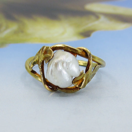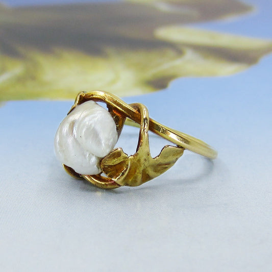 HOLD-Art Nouveau Ginkgo Leaf Pearl Ring 18k, French c. 1890Regular price $ 1,800.00 USDRegular priceUnit price per-