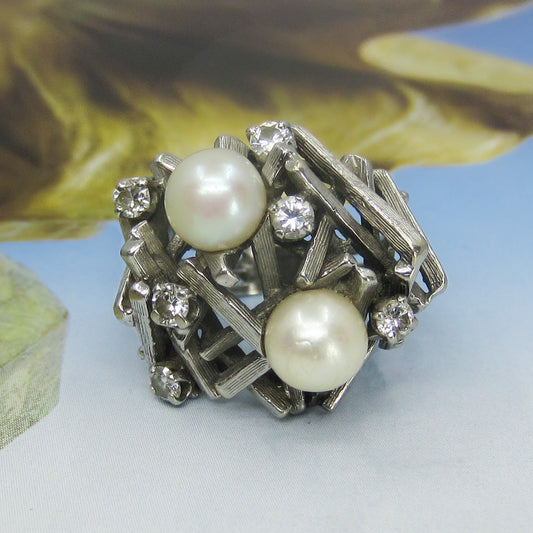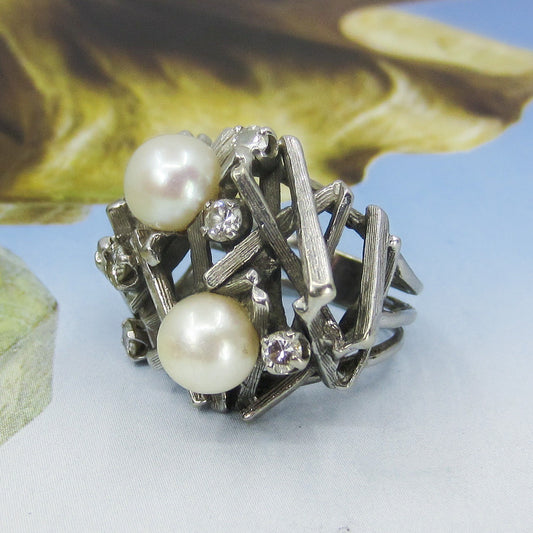 Brutalist Diamond And Pearl Ring 14k c. 1970Regular price $ 2,500.00 USDRegular priceUnit price per-