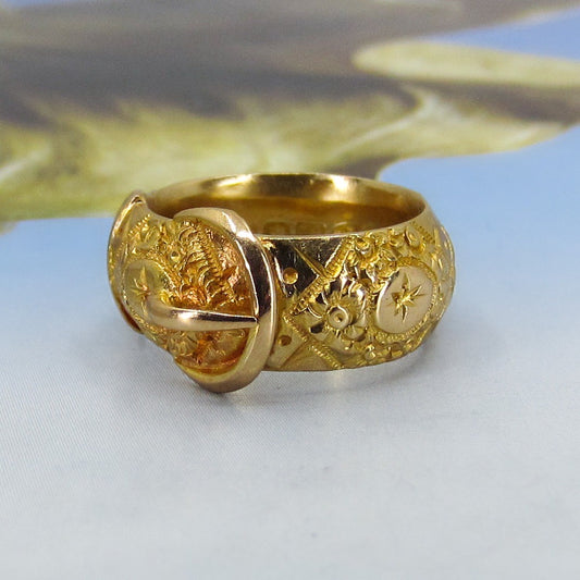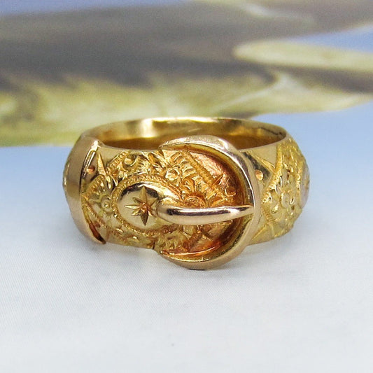 Victorian Wide Patterned Buckle Ring 18k, British c. 1890 size 6.25Regular price $ 1,100.00 USDRegular priceUnit price per-