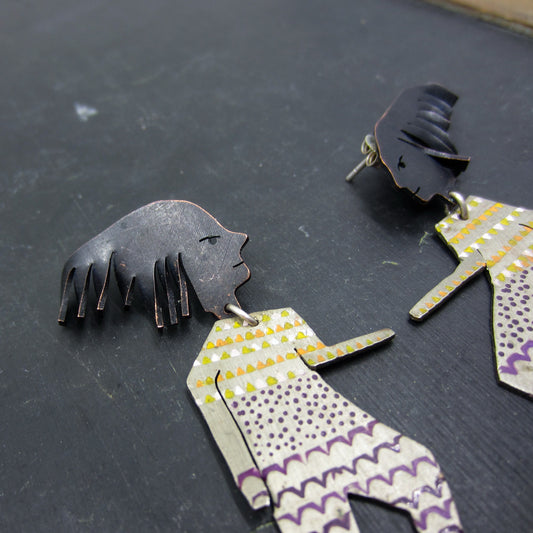 Post-Modern Asymmetrical Earrings 14k/Silver c. 1980