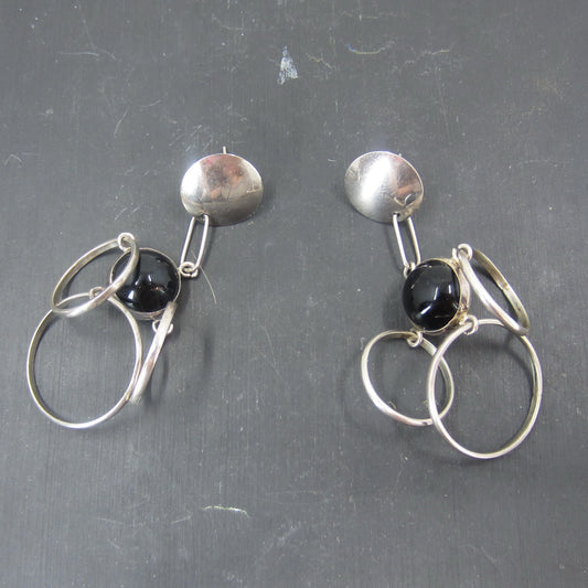 Vintage Post Modern Onyx Mobile Earrings Sterling c. 1980