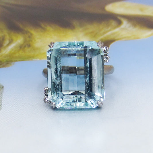 MidCentury Aquamarine and Diamond Ring 18k c. 1960Regular price $ 0.00 USDRegular priceUnit price per-
