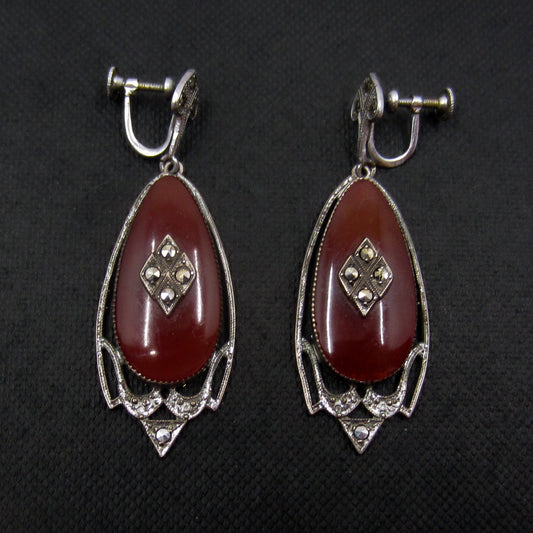 SOLD - Art Deco Marcasite and Carnelian Drop Earrings Sterling c. 1920Regular price $ 0.00 USDRegular priceUnit price per-
