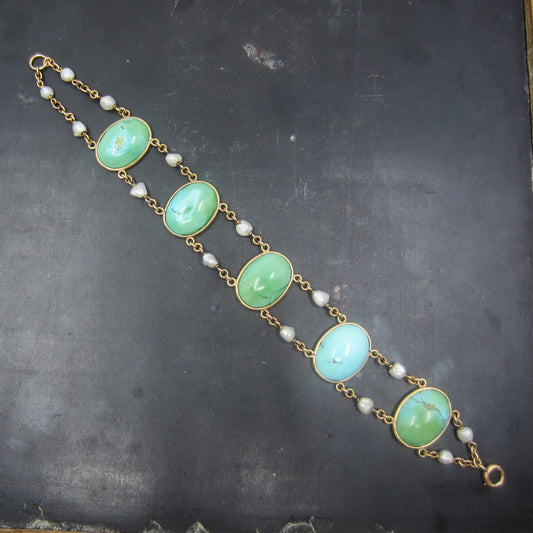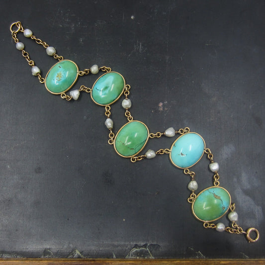 OLD-Edwardian Turquoise and Pearl Bracelet 14k c. 1910Regular price $ 0.00 USDRegular priceUnit price per-