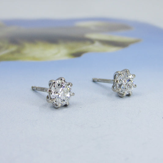 SOLD--Old European Cut Diamond Stud Earrings 14k