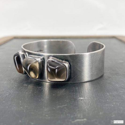 SOLD--Modernist Quartz Cuff Bracelet Sterling, Kasityo Finland c. 1962