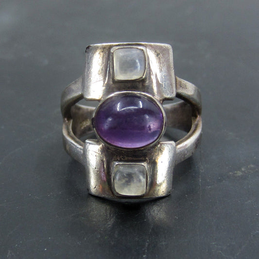 SOLD--Post-Modern Amethyst and Moonstone Ring Sterling c. 1990