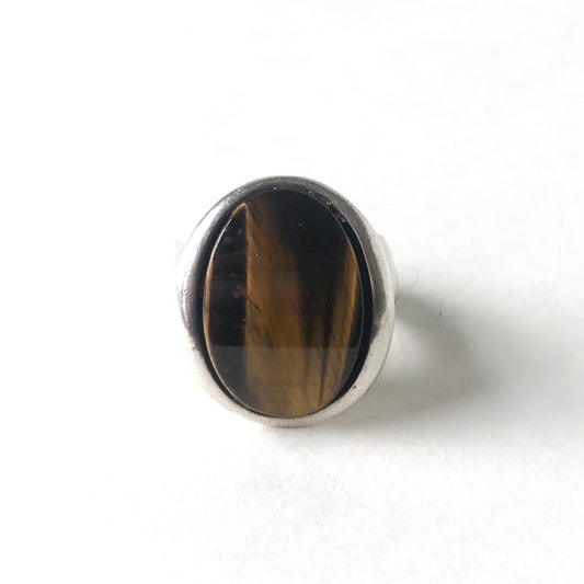 SOLD--Modernist Tigers Eye Signet Ring Sterling c. 1970