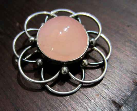 SOLD--Modernist Rose Quartz Brooch Sterling c. 1960
