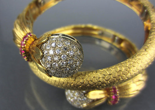 SOLD--Most Glamorous Mid-Century Diamond and Ruby Coil Bracelet 18k, Italy c. 1960