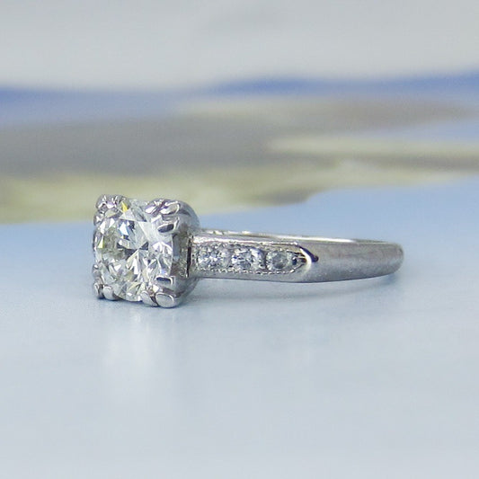 SOLD--Retro Round Brilliant Cut .76ct Diamond Engagement Ring Platinum c. 1940