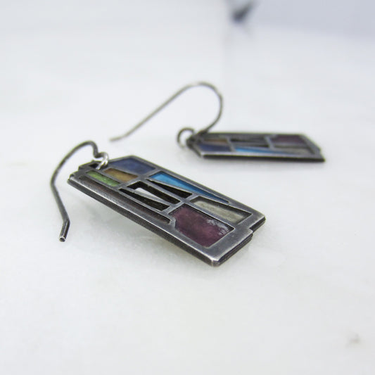 SOLD--Post-Modern Enamel Drop Earrings Sterling, Carly Wright