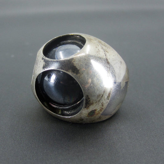 SOLD--Very Cool Post-Modern Hematite Dome Ring Sterling, Poland c. 1990