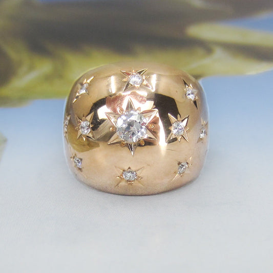 SOLD--Retro Star Set Diamond Bombe Ring 18k, French c. 1940