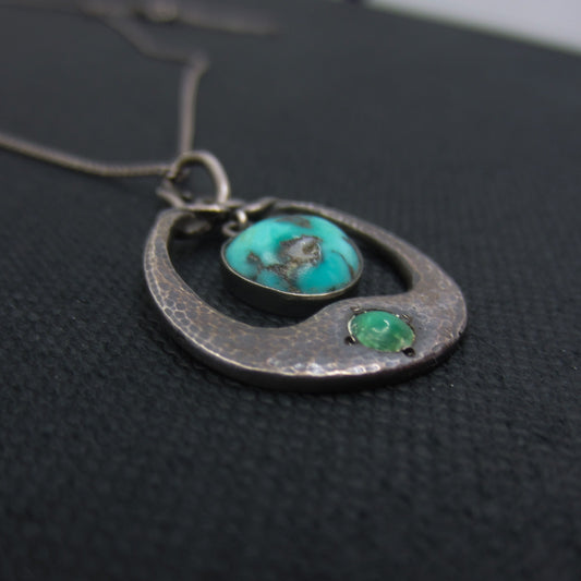 SOLD--Rare Arts & Crafts Hammered Turquoise Pendant Sterling, Liberty & Co c. 1910