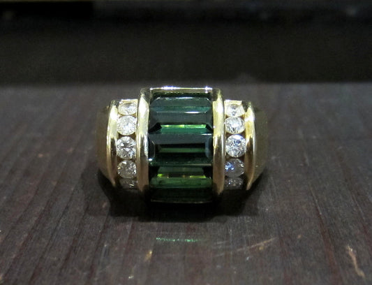 SOLD--Very Chic Tourmaline and Diamond Ring 18k c. 1980s