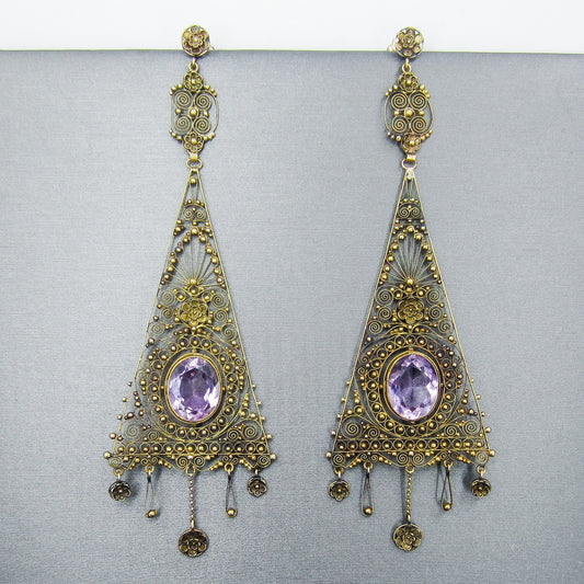 SOLD--Victorian HUGE Amethyst Cannetille Earrings c. 1900