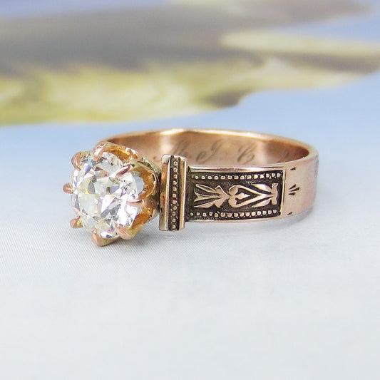 SOLD--Victorian Old European 1.18ct Diamond Engagement Ring 14k c. 1881