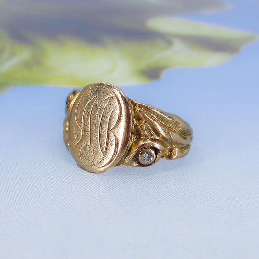 SOLD--Victorian Diamond Signet Ring 14k c. 1900