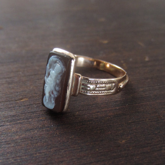 SOLD--Victorian Dainty Hardstone Cameo Ring 14k c. 1880