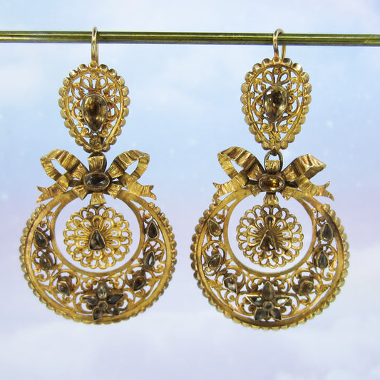 SOLD--Victorian Foil-Backed Citrine Pendeloque Day/Night Earrings 22k c. 1850