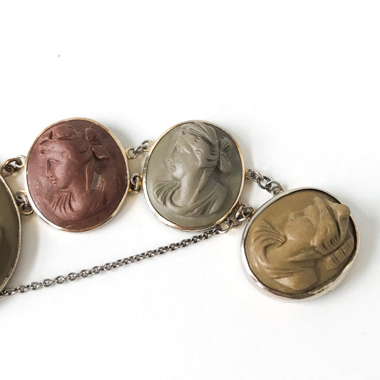 SOLD--Victorian Lava Cameo Bracelet Gilt Silver c. 1860