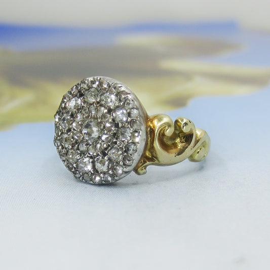 SOLD--Victorian Diamond Cluster Ring Silver/18k c. 1890
