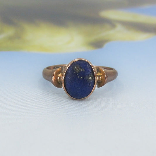 SOLD--Victorian Bezel Set Lapis Ring 9ct, British c. 1894