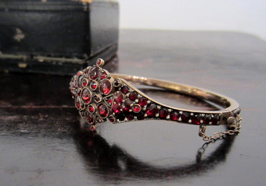 SOLD--Victorian Bohemian Garnet Bangle Gilt Brass c. 1880