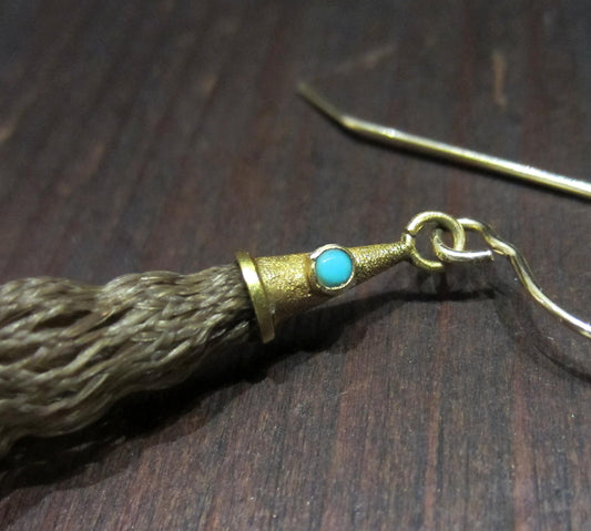 SOLD--Victorian Long Hairwork Earrings 18k c. 1870