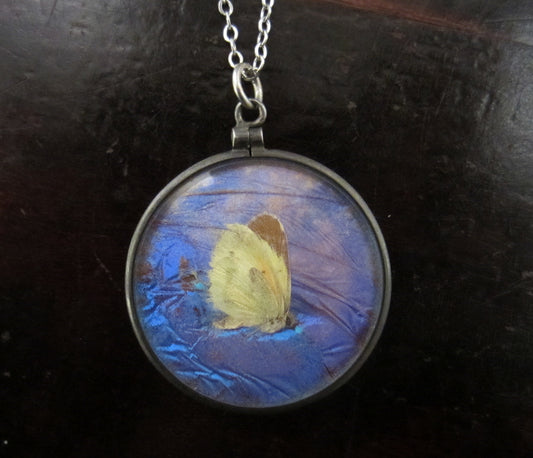 SOLD--Victorian Butterfly and Bird Feather Reversible Pendant Sterling c. 1890