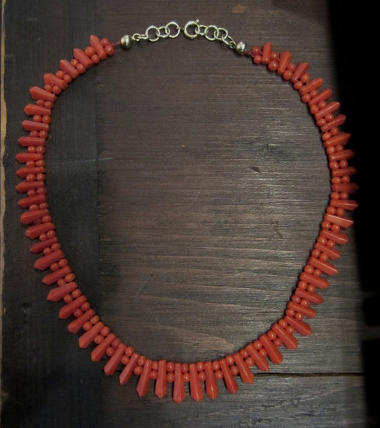 SOLD--Victorian Faceted Sardinian Coral Necklace c. 1860