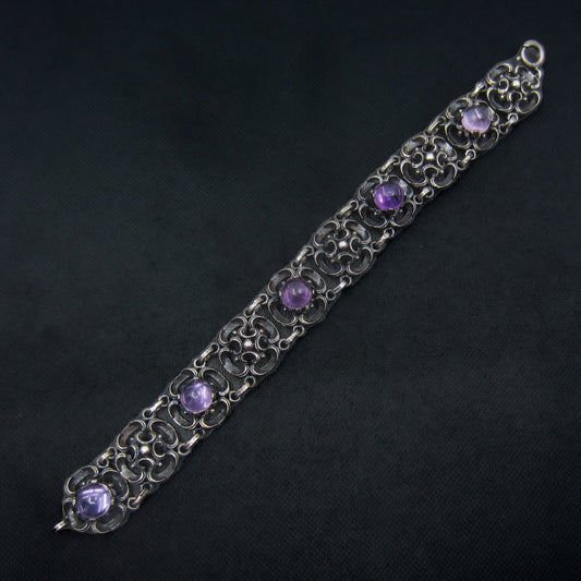 SOLD--Victorian Renaissance Revival Amethyst Bracelet Sterling c. 1890