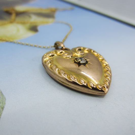 SOLD--Victorian Old Mine Diamond Heart Locket 14k c. 1900