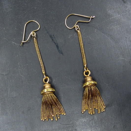 SOLD--Victorian Tassel Earrings 18k, French c. 1880