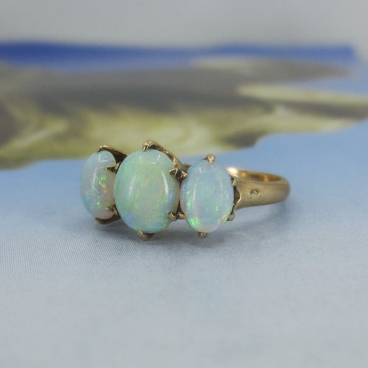 SOLD--Victorian Three Opal Ring 14k c. 1880