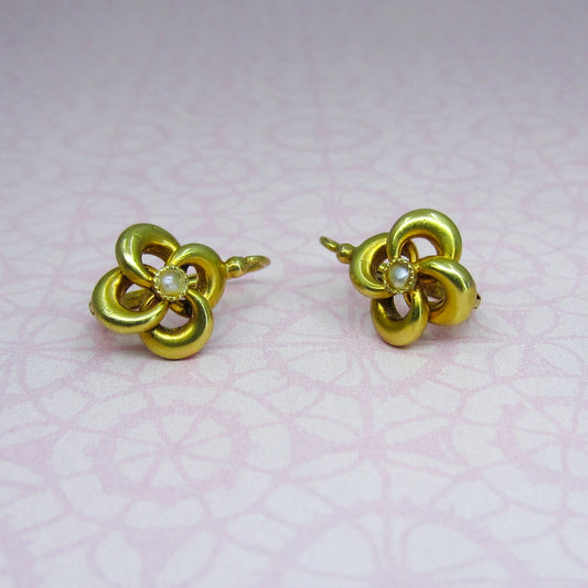 SOLD--Victorian Pearl Love Knot Earrings 18k, French c. 1900