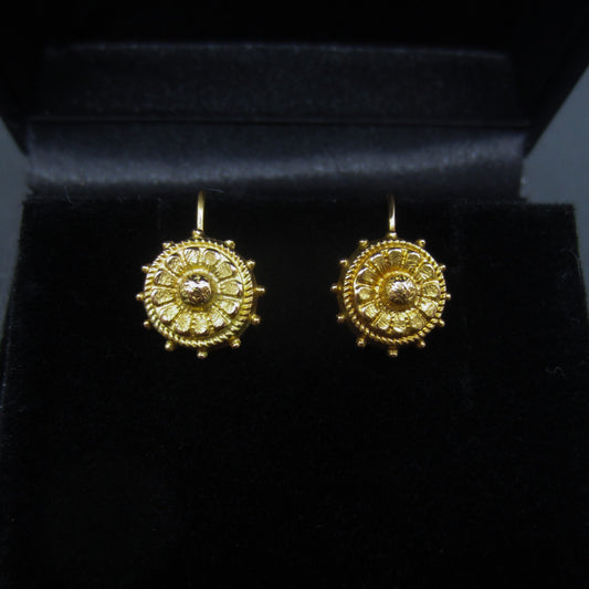 SOLD Victorian Etruscan Revival Small Drop Earrings 15k c. 1880