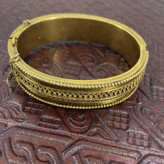 SOLD- Victorian Etruscan Revival Hinged Bangle Gold-fill c. 1880