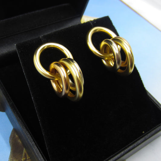 SOLD- Tri-Gold Hoop Earrings 18k c. 1980