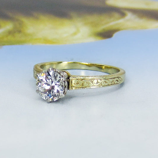 SOLD- Art Deco Old European .71ct Solitaire Diamond Engagement Ring Platinum/14k c. 1920
